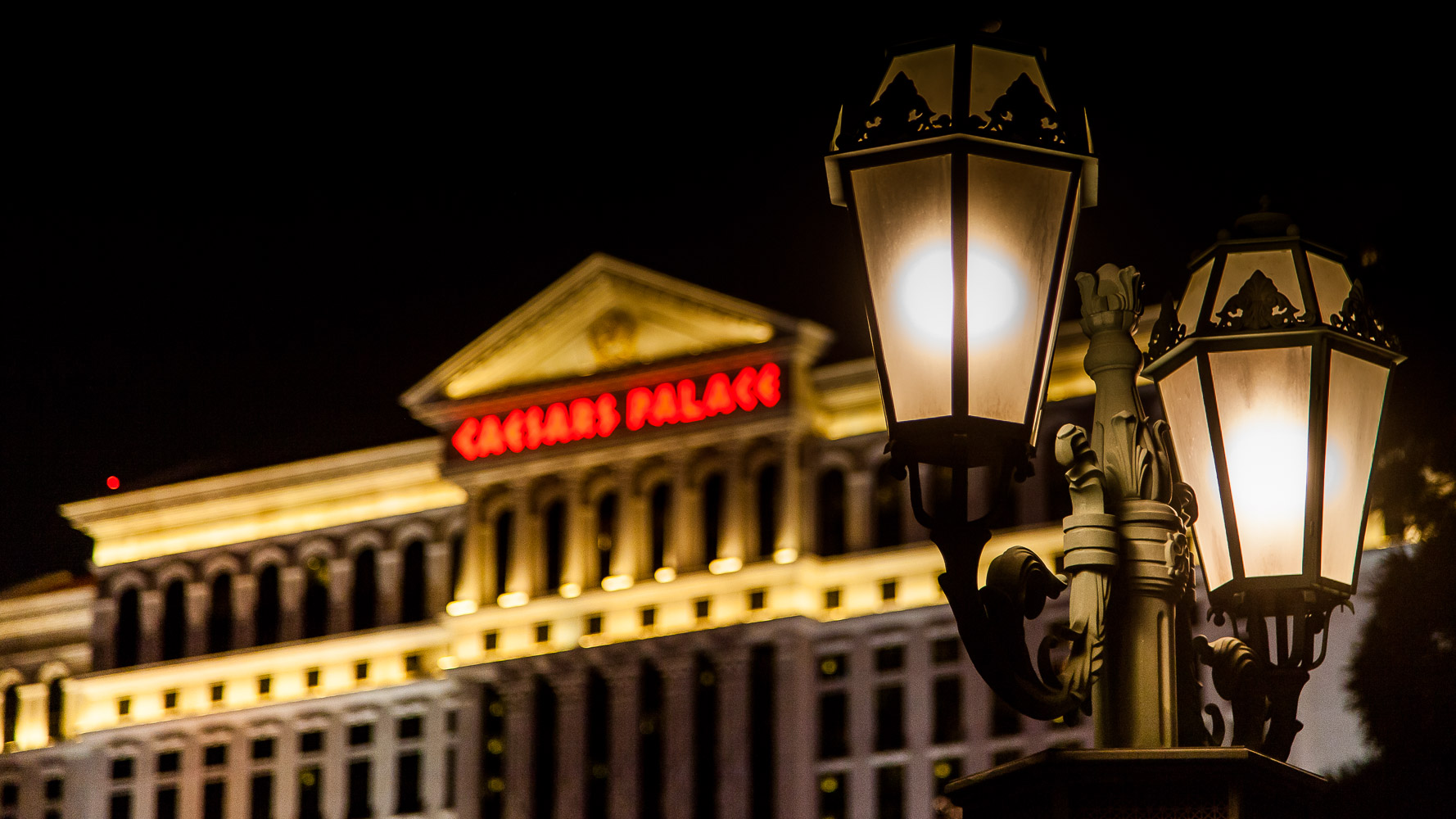 Auf dem Foto ist das (in meinen Augen) berühmteste Hotel zu sehen, das „Caesars Palace“, und ich bilde mir ein, dass man den Schriftzug noch entziffern kann, das war jedenfalls meine Absicht.