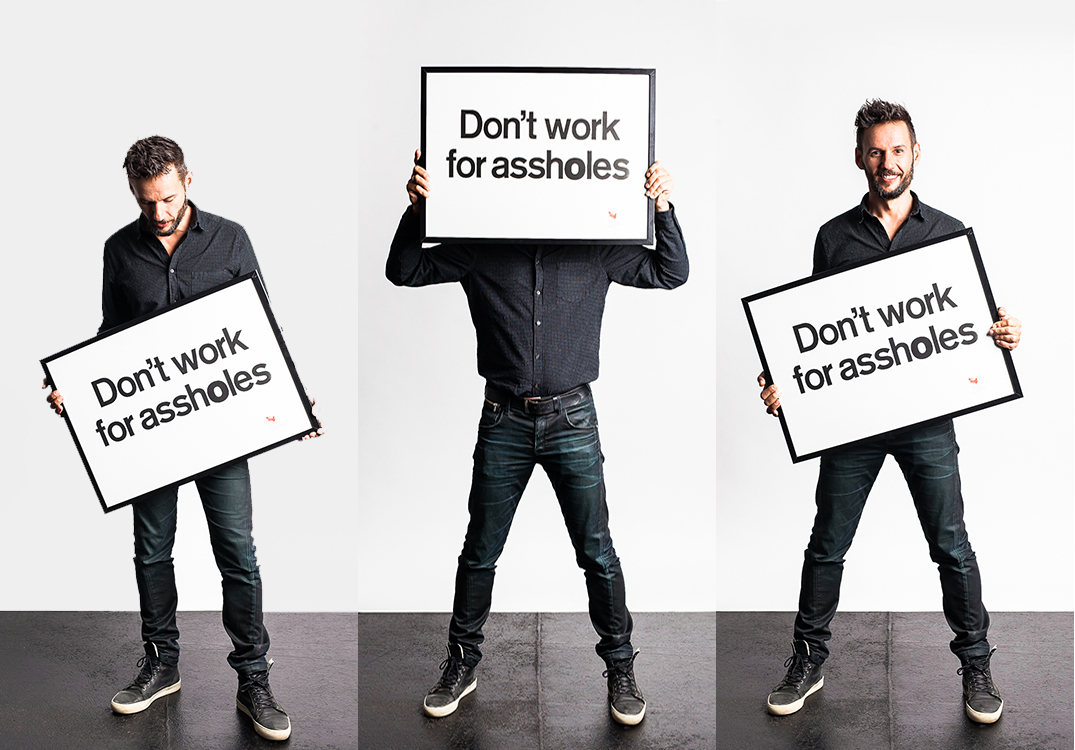 Das ist die Botschaft des Tages, wenn nicht des Jahres. Wir sehen den Wiener Fotografen Christian Anderl, der sich sein wichtigstes Geschäftsprinzip eingerahmt und ins Studio gestellt hat.