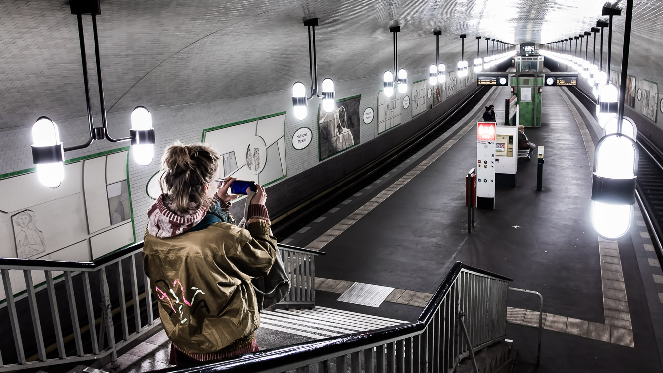 Was für ein U-Bahnhof! Er heißt „Märkisches Museum“, liegt in Berlin-Mitte, und man fährt mit der U2 hindurch. Zwar lebe ich seit 1992 in Berlin und Umgebung, bin aber kein intensiver Nutzer des öffentlichen Nahverkehrs und habe diesen Bahnhof mit seiner unglaublichen Beleuchtung heute zum ersten Mal gesehen – oder jedenfalls bewusst wahrgenommen. Und gottlob war ich mit dieser Wahrnehmung nicht allein.