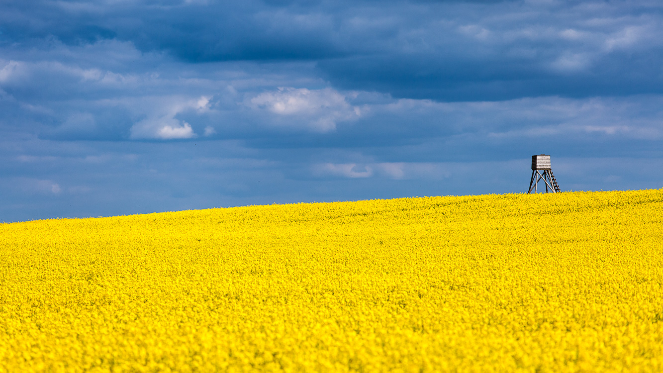 Rapsfeld, gelb, Himmel, bewölkt, Wolken, Hochsitz