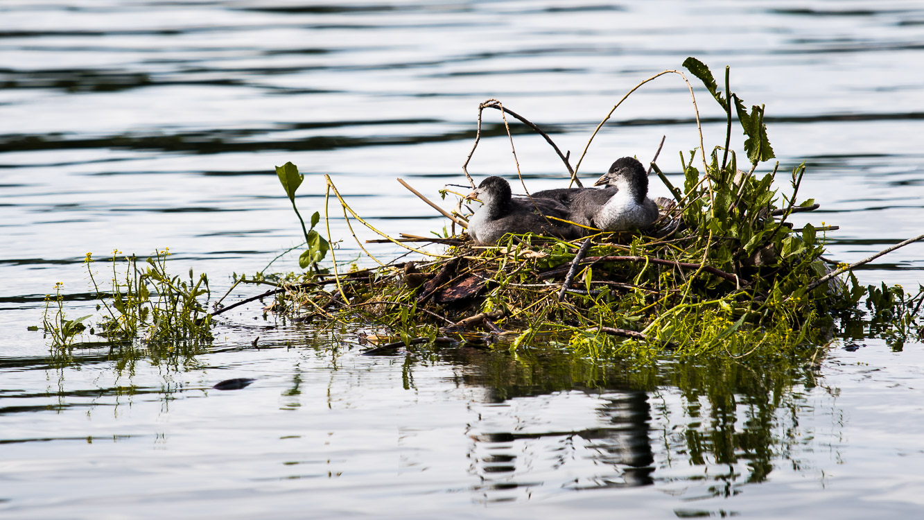 Blesshuhn, Küken, Nest, Wasser, See, Bodensee