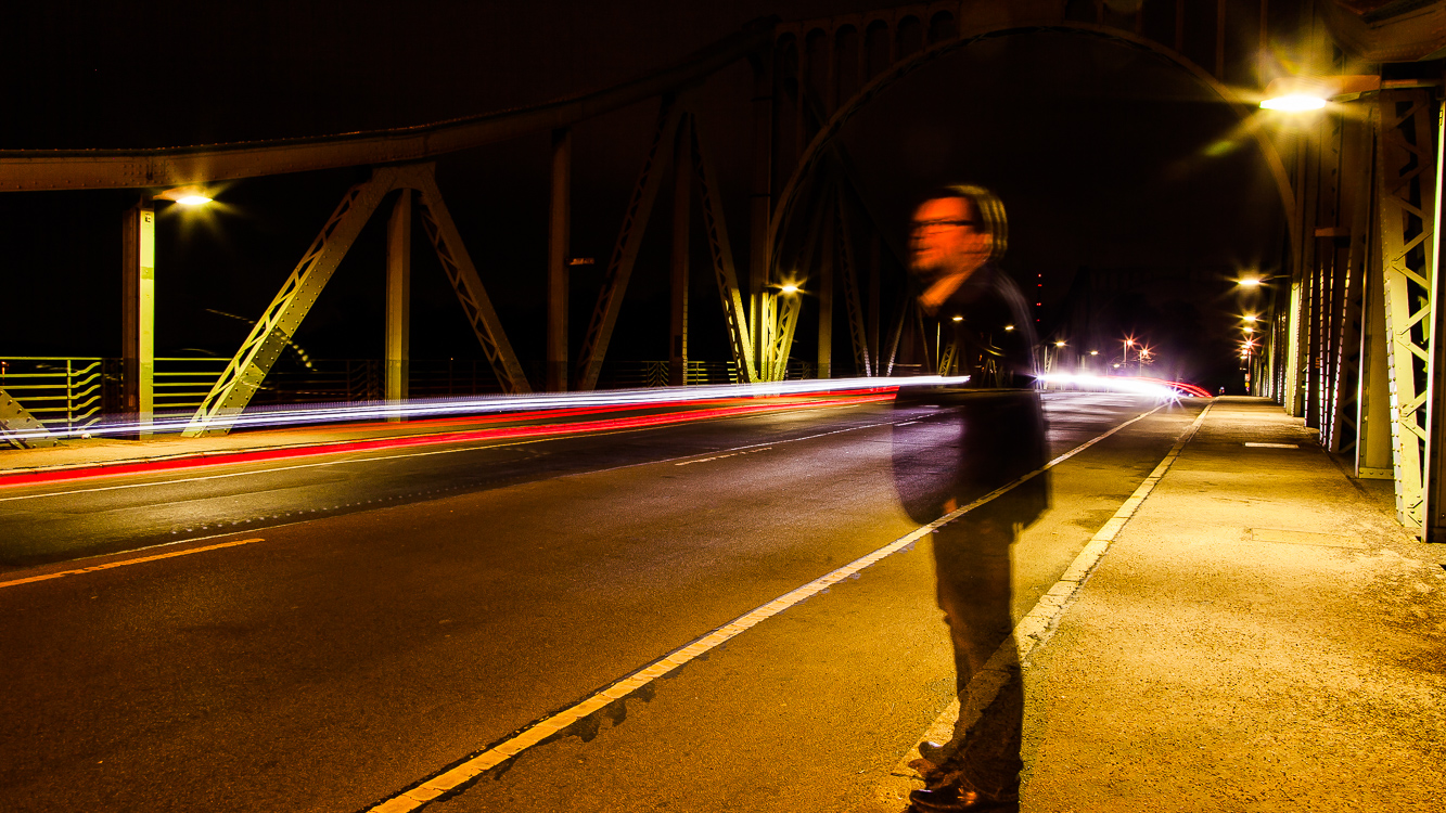 Zugegeben, ich habe den Film noch gar nicht gesehen, aber dieses ist die Bridge of Spies – die Glienicker Brücke, die Berlin mit Potsdam verbindet. Hier wurden im Kalten Krieg Spione ausgetauscht. Ich hatte heute Abend ganz in der Nähe zu tun und wollte daher mein Foto des Tages genau dort machen. Eigentlich dachte ich, die Brücke wäre bis zur Spitze der Konstruktion beleuchtet, aber das ist sie nicht, und so gab es ein Problem.